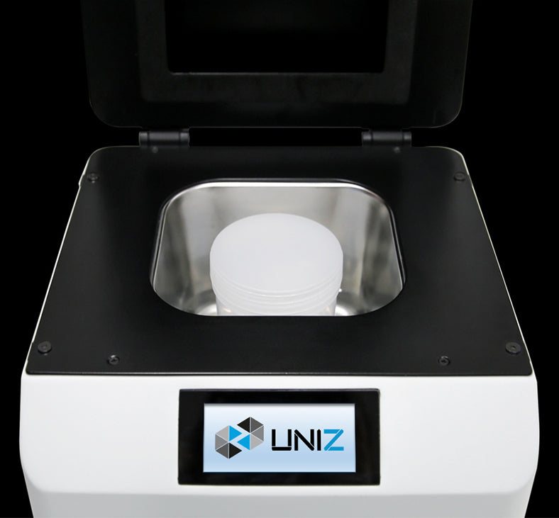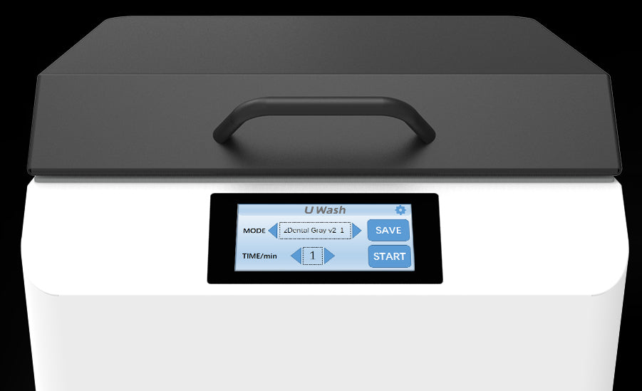uWash dokładnie myje wydrukowane elementy 3D w zaledwie 6 minut (2 cykle mycia). Mocny napęd ultradźwiękowy skutecznie usuwa resztki niewyutwardzonej żywicy i zapewnia powierzchnię bez lepkości, przygotowaną do końcowego utwardzania.