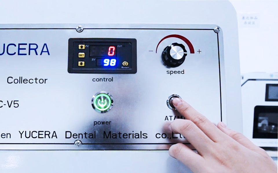 Inteligentny odciąg pyłu z automatycznym impulsowym oczyszczaniem filtra. Komunikuje się z frezarkami (cyrkonia, CAD/CAM), uruchamia się automatycznie, a bezszczotkowy silnik i wydajny wentylator zapewniają wysoki przepływ powietrza i moc ssania.